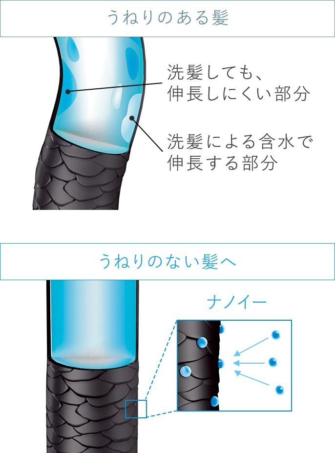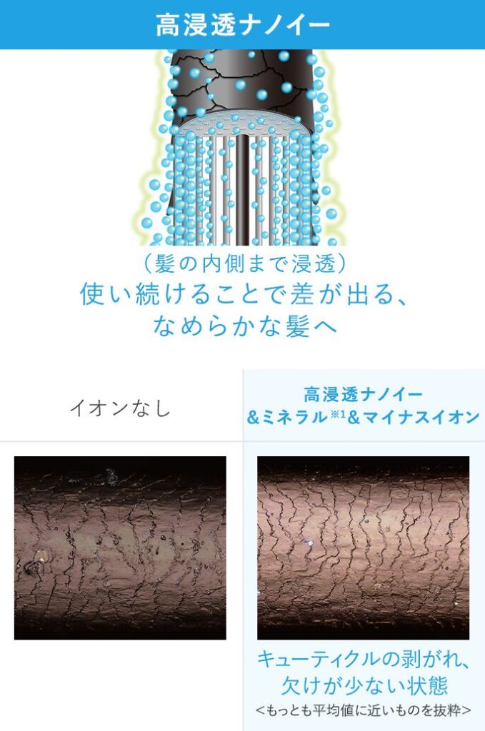 どちらもナノケアの核となる「高浸透ナノイー」を搭載しているため、髪のうるおいや速乾性については同等です。
